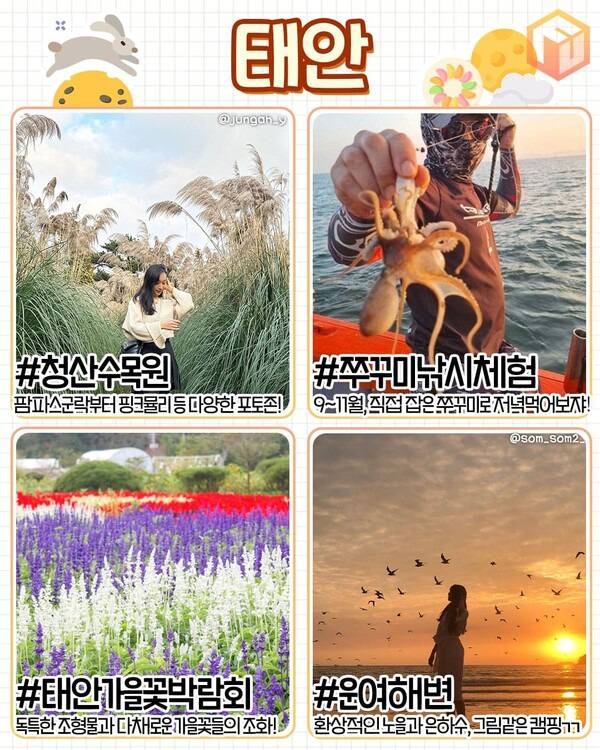 ✅ 청산수목원 ✅ 쭈꾸미낚시 ✅ 태안가을꽃박람회 ✅ 운여해변