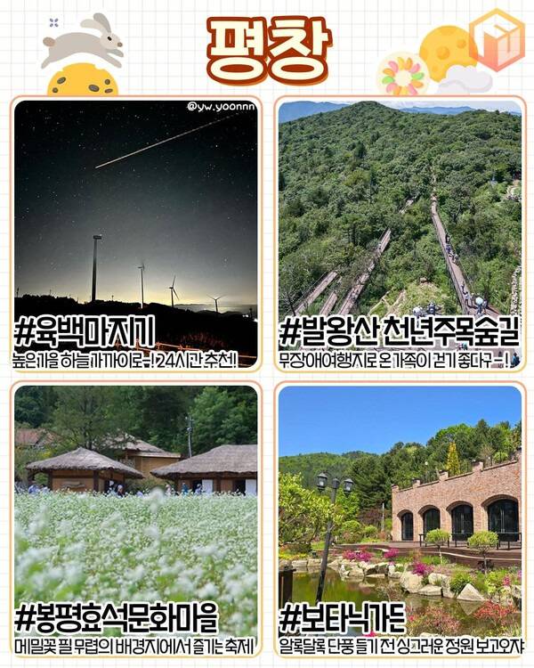✅ 육백마지기 ✅ 발왕산 천년주목숲길 ✅ 봉평효석문화마을(메밀꽃) ✅ 보타닉가든