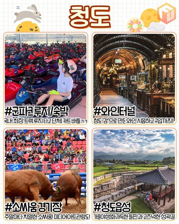 ✅ 군파크 ✅ 와인터널 ✅ 소싸움경기장 ✅ 청도읍성