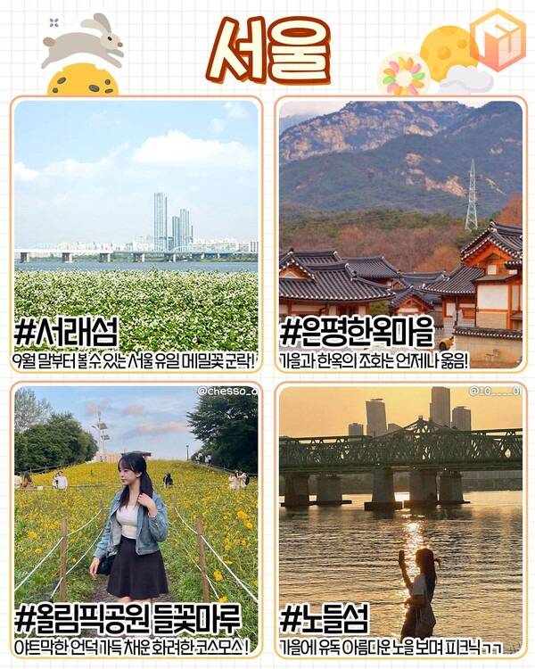 ✅서래섬 ✅ 은평한옥마을 ✅ 올림픽공원 들꽃마루 ✅ 노들섬