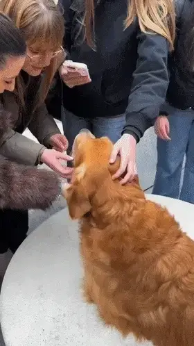 사람들의 이런 관심에 골든 리트리버도 싫지 않은 듯 연신 꼬리를 흔들어댑니다.