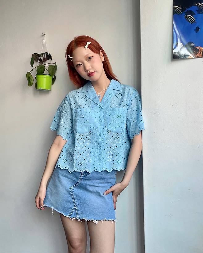 신영님이 픽한 요 블루 컬러의 레이스 펀칭 블라우스를