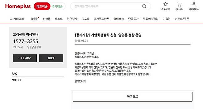 이런 가운데 홈플러스는 4일 오전 서울회생법원에 기업회생절차 개시를 신청했다고 밝혔다.