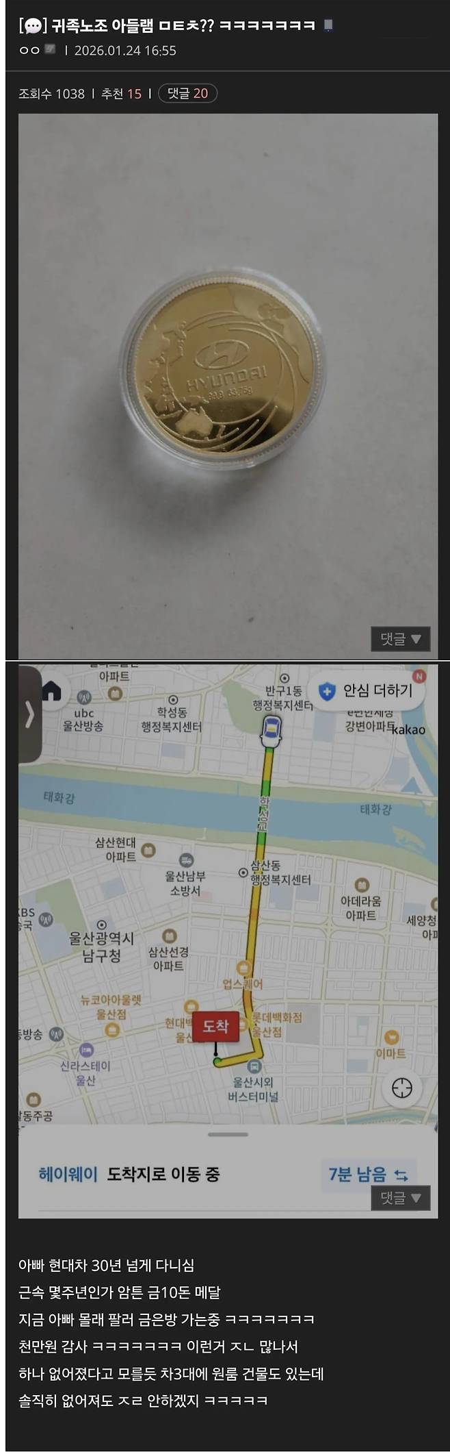 아버지 현대차 근속 메달 훔쳐서 팜