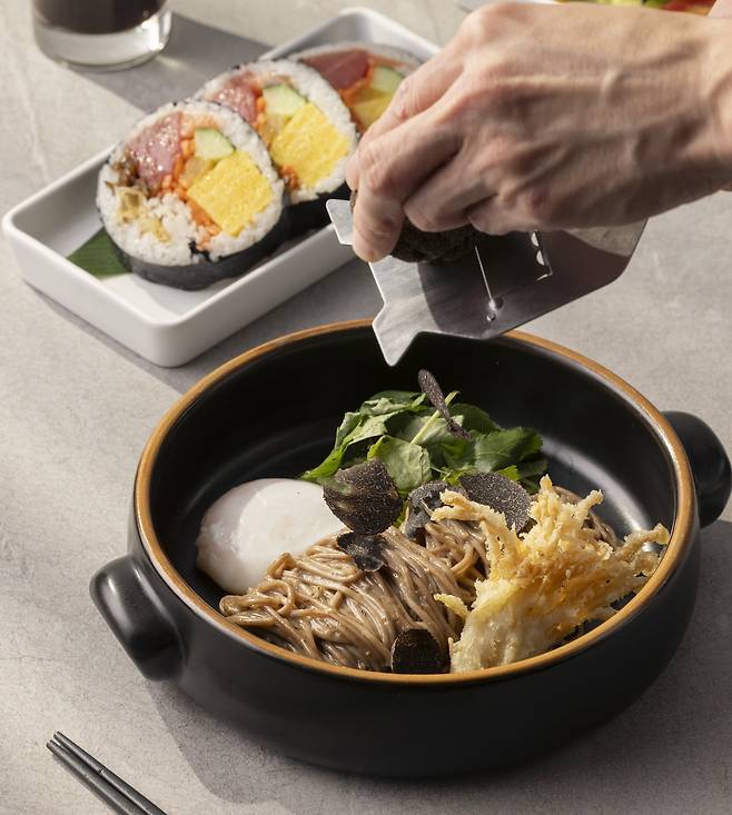 더불어, 저속노화 열풍에 따른 건강한 재료와 현대적인 미각이 결합된 고품격 다이닝 ▲트러플 메밀 소바 & 후토마키를 선보인다. 특유의 풍미가 미각을 자극하는 트러플 소스와 자연의 깊은 맛을 담고 있는 버섯, 자연방목한 달걀을 저온 조리한 수란이 어우러진 메밀 소바와 신선한 해산물과 영양 가득한 채소가 가득 담긴 정통 일본식 롤, 후토마키 세트로 구성했다. 트러플 메밀 소바 & 후토마키에는 미네랄과 항산화 성분이 풍부하여 노화 방지에 도움을 주는 이로운 성분을 가득 담았으며, ▲샐러드와 ▲미소장국 및 ▲사이드 디시가 함께 제공되어 맛과 건강 모두 고려한 완벽한 맛의 균형을 경험할 수 있다.