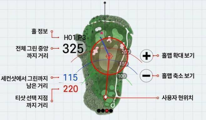 거리측정기 조준선을 깃대 쪽으로 이동합니다.