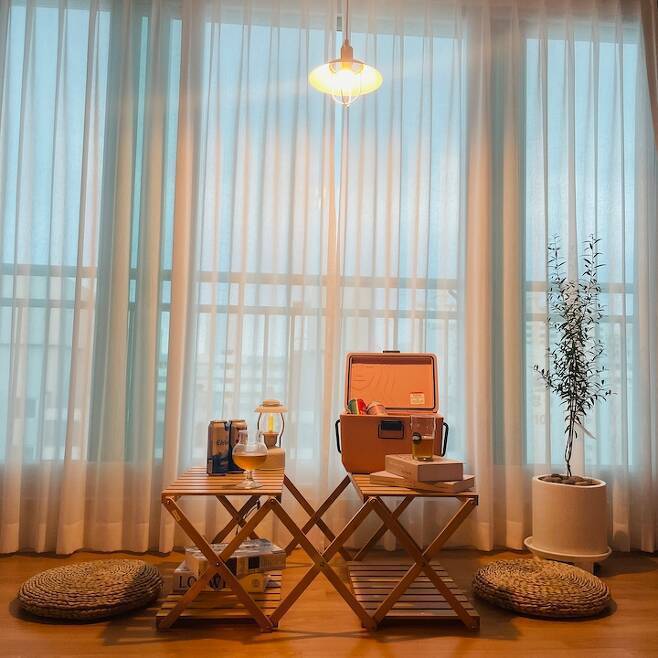가끔은 이렇게 캠핑 분위기를 연출해 보기도 한답니다.
