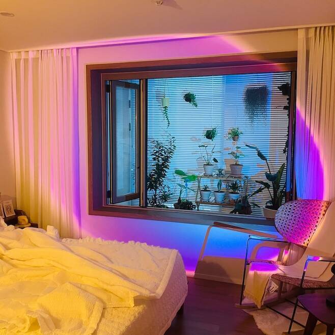 요새 유행하는 조명을 켜서 가끔씩 분위기를 바꿔주기도 해요.