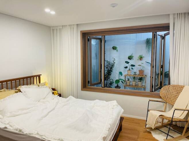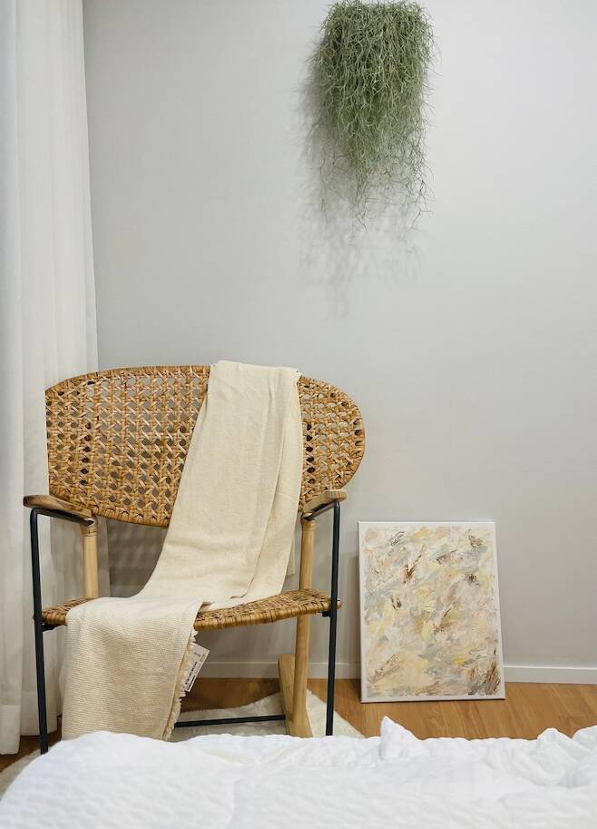 흔들의자를 두었더니 감성 숙소 같은 힐링 공간이 되었어요. 새로운 포토존 완성입니다.