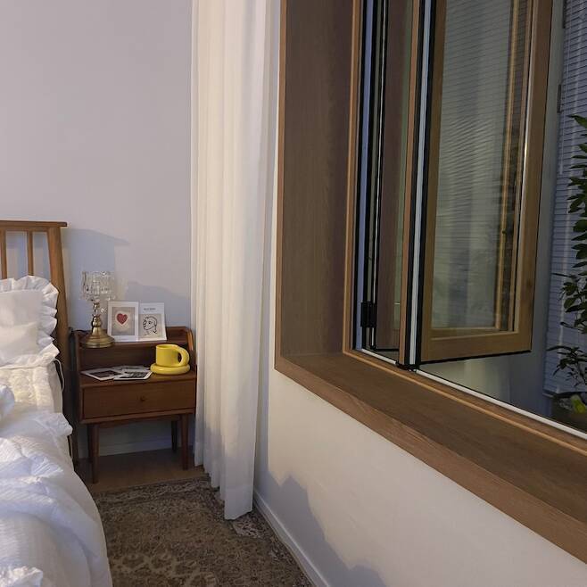 창틀도 조금 더 늘려서 윈도 시트처럼 앉아서 차도 마실 수 있어요. 친구들이 여기에 앉아서 포토존이라며 사진을 많이 찍더라고요.
