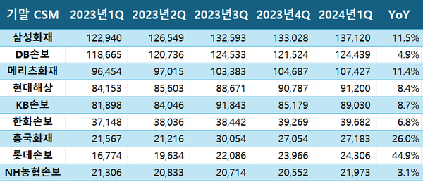 신계약 CSM 약진으로 1분기 말 한화손보 CSM은 3조9682억원을 기록했다. 이르면 2분기에는 4조원을 넘어설 수 있을 것으로 전망된다.
