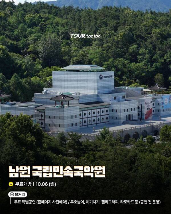 2025 추석 당일 무료 개방되는 남원 국립민속국악원에서는 특별 공연으로 전통예술공연이 예정되어 있습니다. 공연은 사전 예약이 필요한데요.