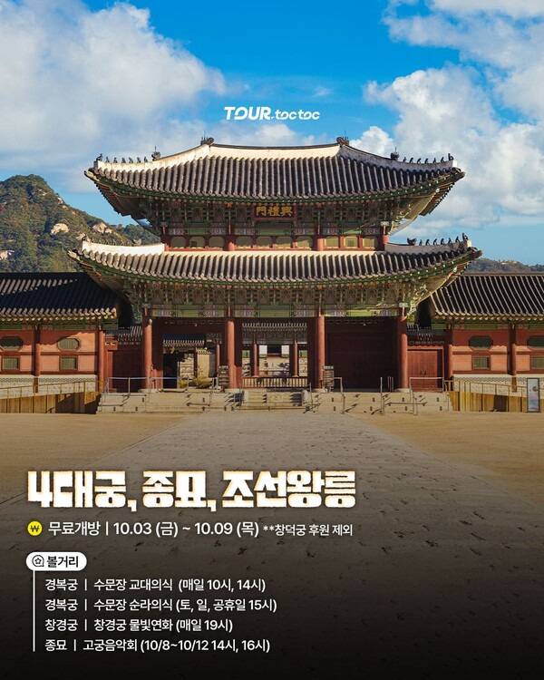 ■ 무료개방: 10월 3일~9일 (추석 당일 제외)