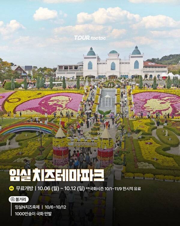 유럽풍의 이국적인 건물 앞, 향긋한 국화가 가득 만발한 임실 치즈테마파크는 국화시즌 한시적으로 입장료를 유료로 전환하는데요. 추석 연휴기간과 겹친 임실치즈축제 기간동안은 무료로 개방됩니다.