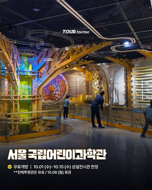 과학을 좋아하는 아이들에게는 최고의 나들이 장소인 서울 국립어린이 과학관 역시 추석 연휴를 포함해 10월 15일까지 무료로 개방됩니다.