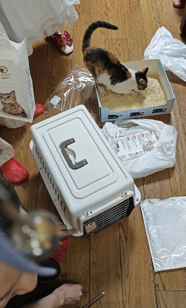 고양이는 집에 놓인 화병 등 다른 물건에는 관심이 없었고, 필요한 물품들이 배달되자마자 사료를 먹고 화장실을 사용한 뒤 스스로 이동장에 들어가는 등 믿기 힘들 정도로 순하고 똑똑한 모습을 보여주었습니다.