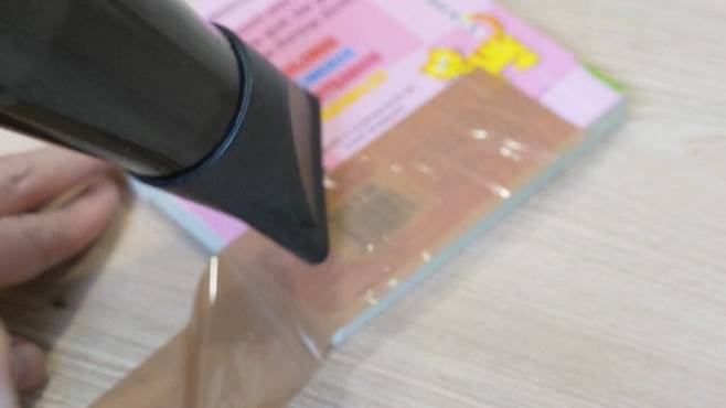 드라이기의 약한 바람을 스티커에 잠시 쐬어주세요. 너무 오래 쐬면 제품에 손상이 갈 수 있으니 주의하세요.
