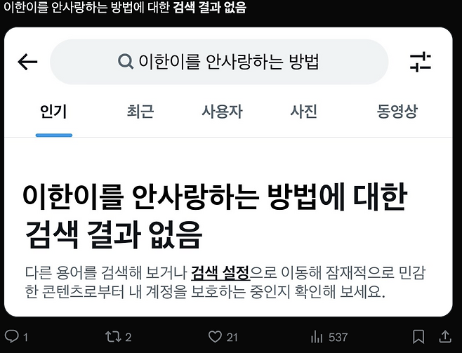 포인트는 진짜 검색 결과가 없어야 한다는 것이다.