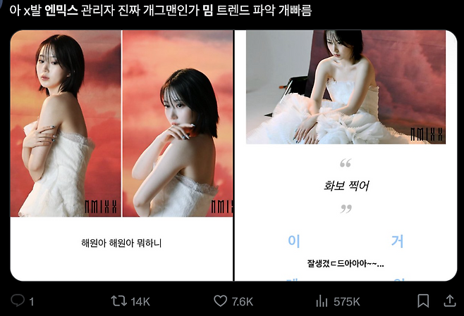 요즘 엔믹스 공식 계정이 밈을 잘 사용하기로 유명한데