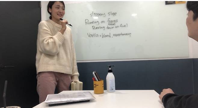 어쨌거나 저는 제 수강생분들이 영어회화가 어렵다고 느끼지 않았으면 좋겠어요. 첫 수업에 영어로 말을 뱉는 것을 어려워하는 분들이 많은데요. 그래도 저는 편하게 말해도 좋으니 영어로 말해보라고 해요. 처음에는 어려워하시는데, 몇 번 발화하다 보면 엄청나게 생각하지 않아도 영어회화할 수 있다는 거에 편해하시더라고요. 저도 처음에 그렇게 영어를 시작했고요. 영어라는 것이 너무 멀게 느껴지지 않게 수강생분들이 느끼도록 하는 게 제 목표예요.