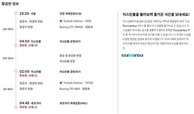 ✔경유지: 이스탄불(인천→이스탄불-후르가다)