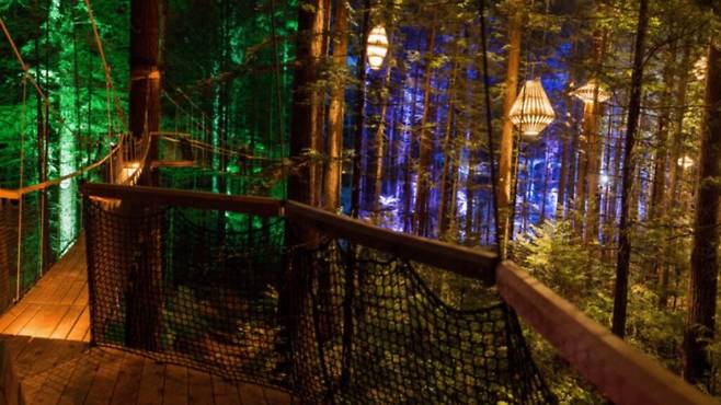레드우즈 나이트라이츠 야간 체험 프로그램에서는 2.5미터 높이에 배치된 30개의 등불이 조명하는 어둠 속의 숲과 그 아름다운 경치를 즐길 수 있다.