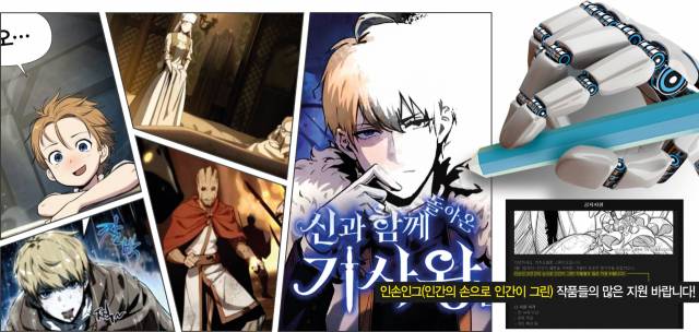 생성형AI를 둘러싼 논란은 지난달 22일 네이버웹툰 신작 ‘신과 함께 돌아온 기사왕님’ 1화가 연재되며 시작됐다. 누리꾼들은 배경 일부나 손가락 등이 부자연스러운 점을 들어 작품이 생성형AI를 활용해 제작된 것이라는 의혹을 제기했다. 별점 테러 등 반발이 지속되자 제작을 맡은 블루라인스튜디오 측은 “AI를 이용해 생성된 이미지를 사용한 게 아니라 마지막 단계에서 AI 보정 작업을 한 것”이라며 “연재된 분량에서 AI 보정을 삭제해 다시 올리고 앞으로 보정 없이 연재할 것”이라고 밝혔다.