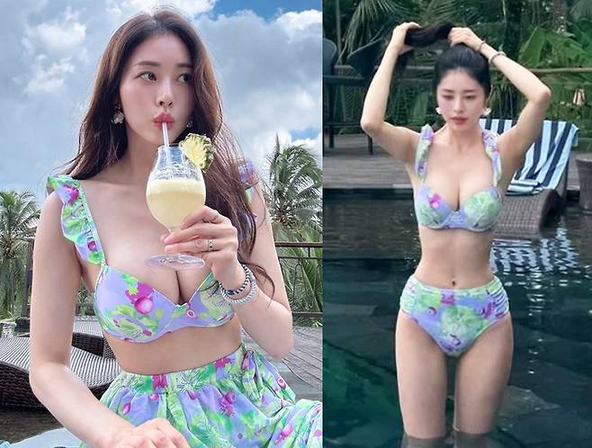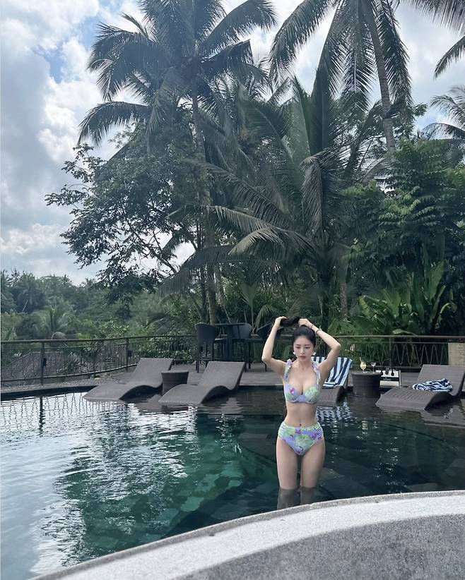 서동주는 트로피컬 무드가 가득한 플라워 패턴의 비키니를 착용해 군살 없는 탄탄한 바디라인을 완벽하게 드러냈습니다.