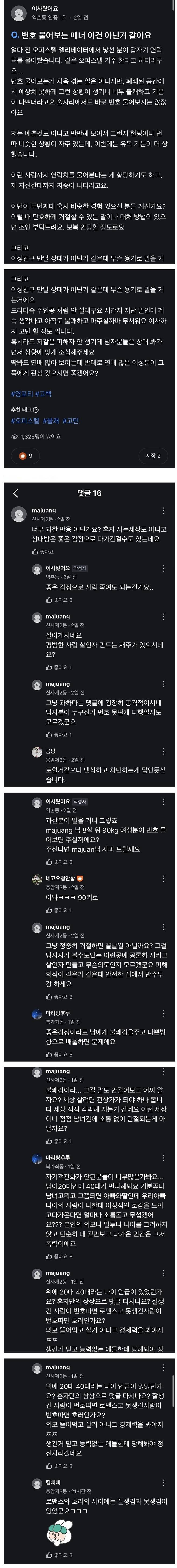 엘리베이터에서 나이 많은 남자가 번호 물어봐서 기분 나빴던 여자