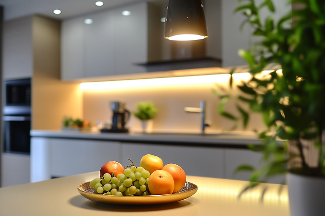 부엌은 가족이 함께하는 공간이기도 하니, 따뜻하고 정돈된 느낌을 유지하는 것이 중요합니다.