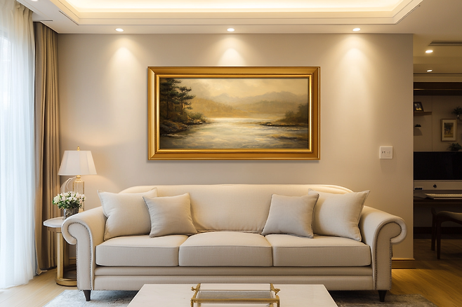 ✔ 거실이나 현관에 황금색 액자나 장식품을 배치하면 재물운이 활발하게 흐를 수 있습니다.