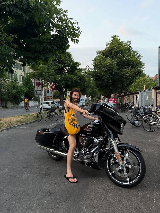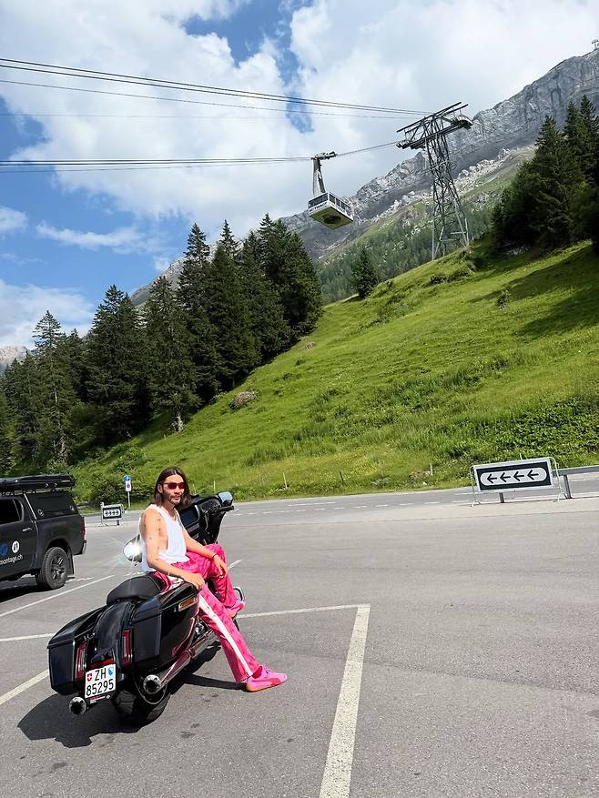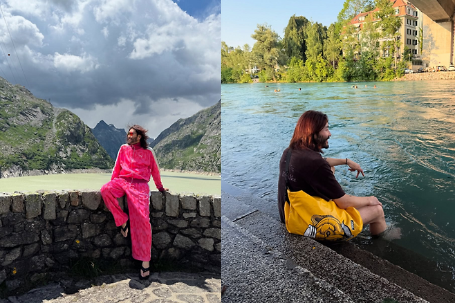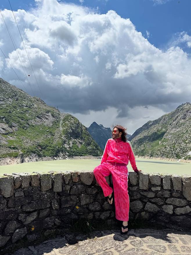 공개된 사진에서 노홍철은 핫핑크 컬러의 트레이닝복을 입고 스위스의 산과 호수를 자유롭게 누비며, 여유 가득한 미소를 자랑했다.