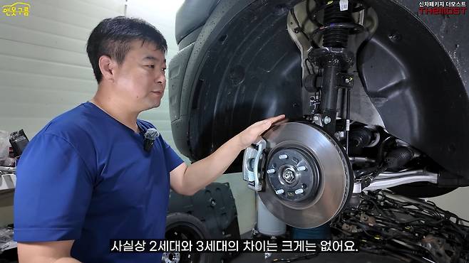 전륜 서스펜션은 최신 3세대 플랫폼으로 변경되었음을 확인할 수 있었습니다. 이는 차량의 성능과 안전성을 한층 높이기 위한 중요한 변화라고 할 수 있습니다.