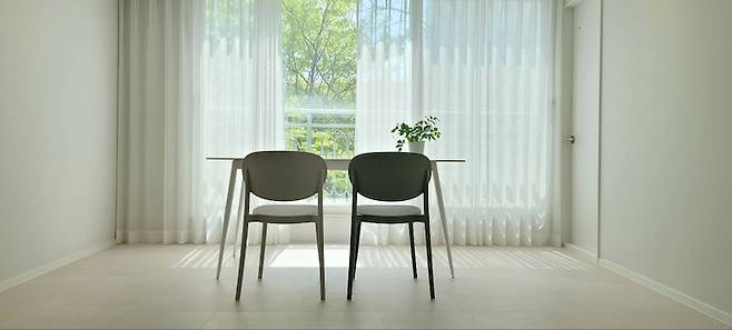 원래는 안방으로 쓰이던 공간이에요. 저는 서재로 용도를 변경했습니다. 기존에도 무난한 구조와 가구 배치였지만 재택근무하는 환경을 만들기 위해 깔끔한 공간을 만들고자 했어요. 블라인드와 붙박이장 모두 철거하고 화이트톤의 화사한 서재로 탈바꿈 시도했습니다.