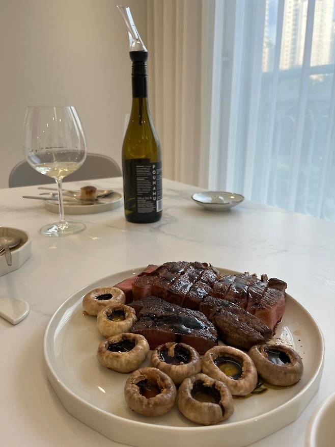 저녁에도 충분히 은은한 분위기가 연출됩니다. 창밖을 바라보기도 하고 넷플릭스, 영화를 와인 한 잔과 함께 시청하기도 해요. 혹시 조도가 너무 낮으면 스탠드 조명을 구매할 계획이었으나 아직까지는 충분한 것 같아요 :)