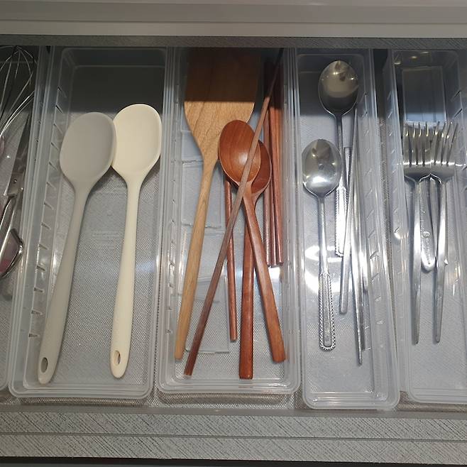 부족한 수납공간을 잘 활용하기 위해서 서랍 tray도 활용하고 있습니다. 소소한 소품을 잘 활용하고 있어요. 좁은 공간을 활용할 때 도움이 되신다면 좋겠습니다.
