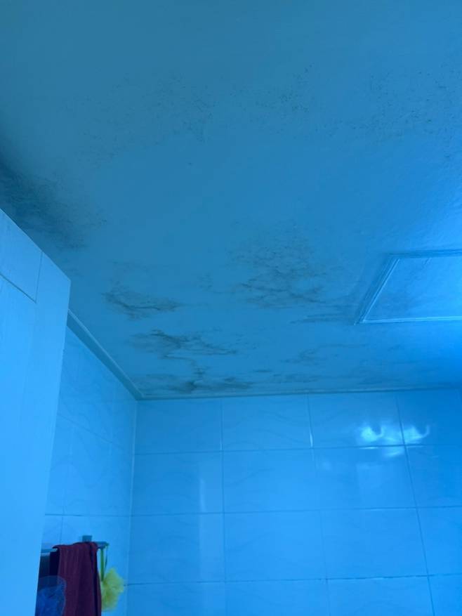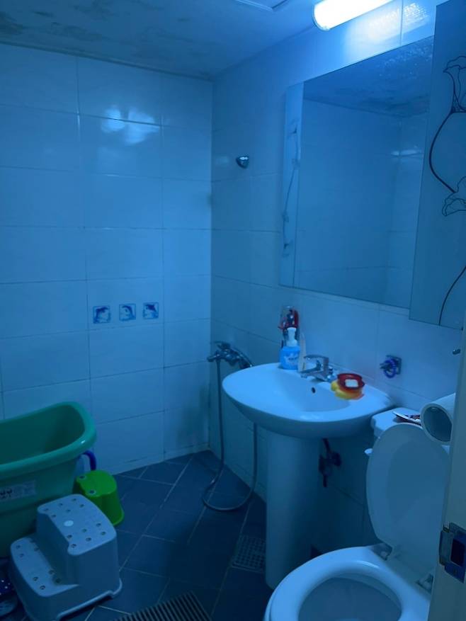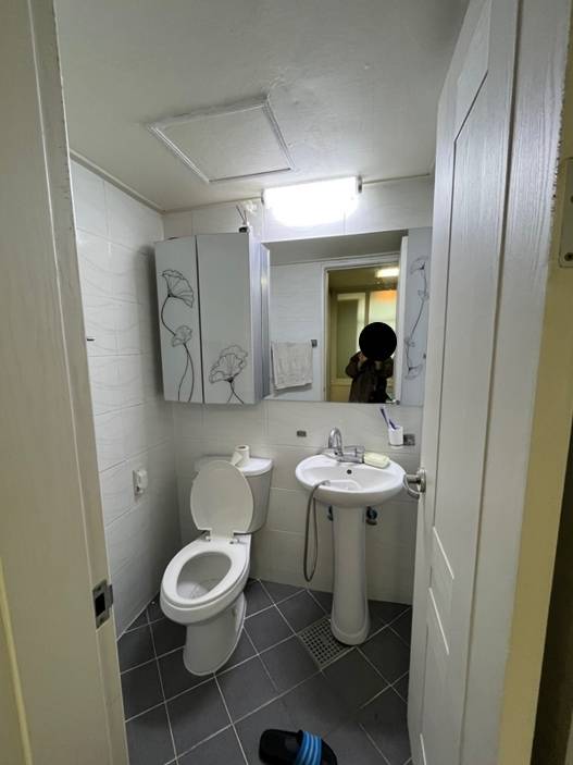 가장 암울했던 화장실입니다. 정말 특이하게 메인 화장실인데 환풍구가 없더라구요. 이전 집주인께 여쭤보니 처음 인테리어 공사할 때 기존 창문을 막아버렸는데 따로 환풍구는 설치하지 않아서 화장실 천장에 습기 + 곰팡이가 가득했습니다.