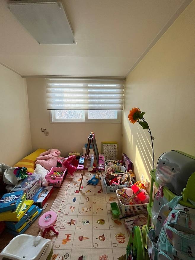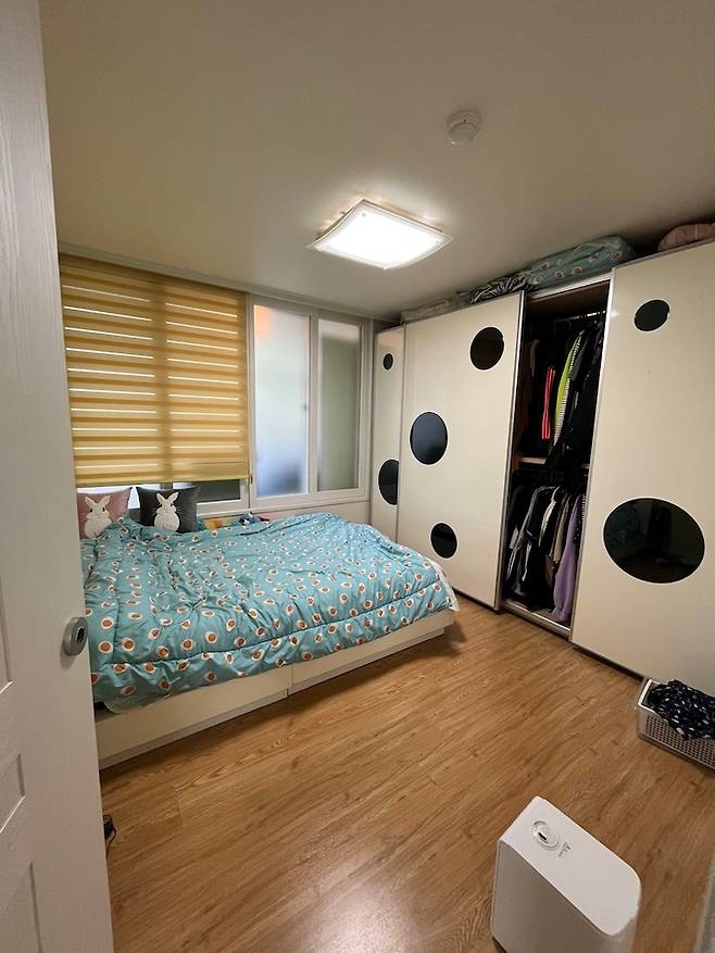 아기자기한 잡동사니가 많은 입구방입니다. 서재로 쓰기에는 너무 작고, 드레스룸으로 쓰기에는 햇빛이 너무 잘 들어 아쉬웠어요. 그래서 저희는 침대 + 협탁만 놓고 침실로 쓰기로 결심했습니다.