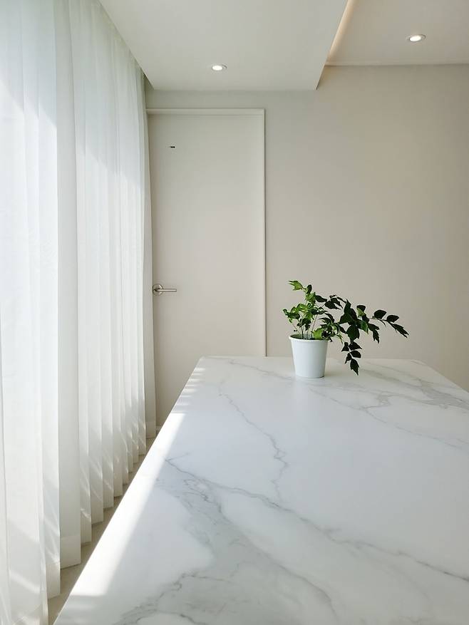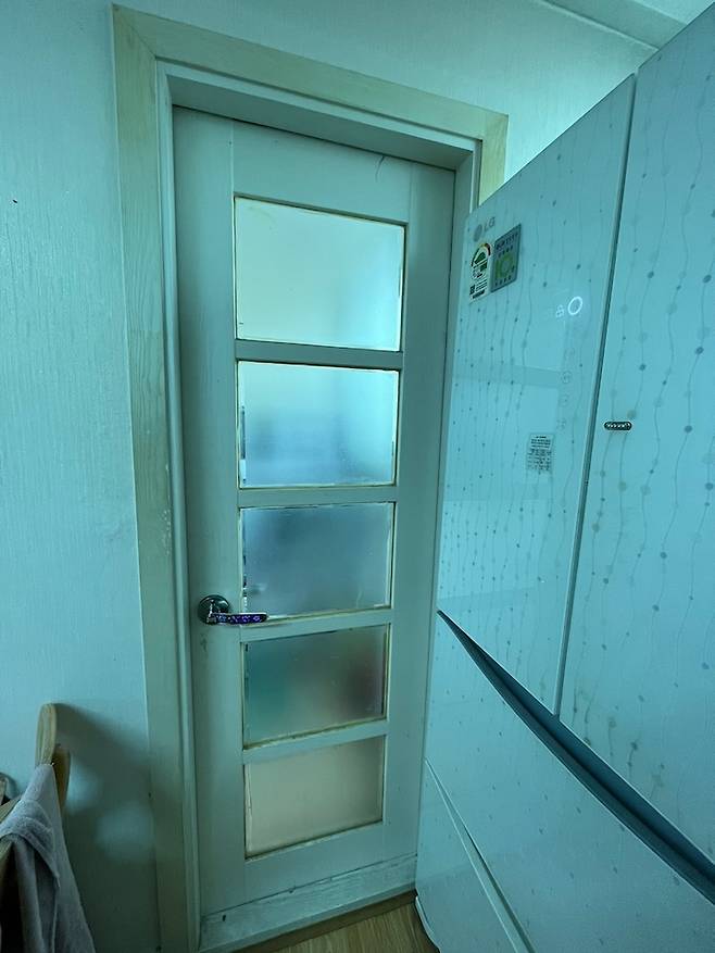 베란다로 나가는 문입니다! 터닝도어를 했으면 좋았겠지만.. 현실과 타협하여 목문으로 통일했어요. 겨울은 아직 안 겪어봐서.. 어떨지 모르겠지만 디자인은 대만족입니다. 문 색도 완전 화이트가 아닌 아이보리 한 방울 떨어린 색!! 필름 번호 참고하세요!