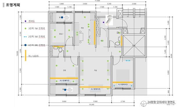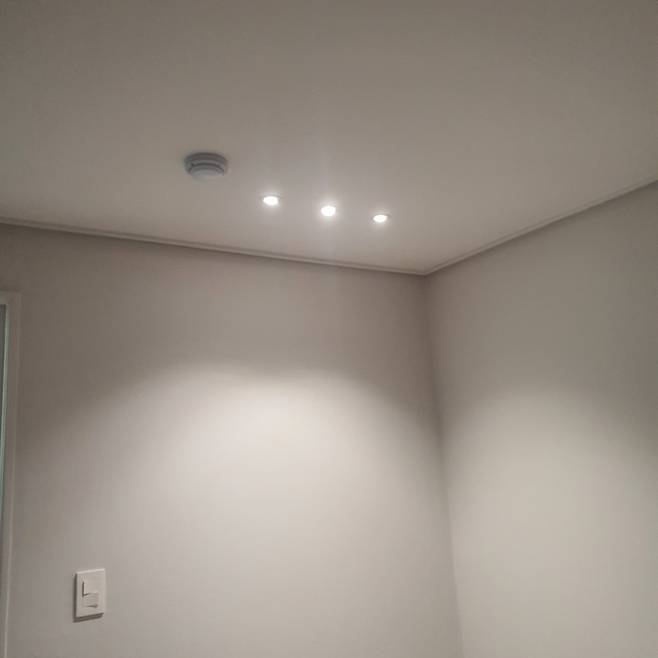 침실 반대편은 2인치 조명으로 시공했어요. 아무래도 자는 시간을 제외하면 밝은 조도가 가장 불필요한 공간이라고 생각해서 조명 크기와 수를 최소화했습니다. 크기가 작아서 귀엽지 않나요?