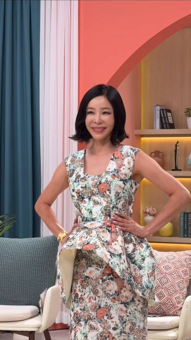 이혜영이 풍성한 실루엣의 플라워 프린트 드레스를 착용해 시선을 사로잡았습니다.