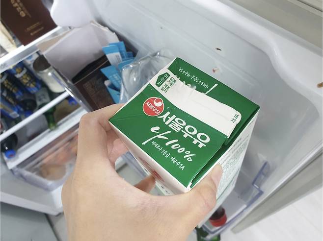 완전히 밀봉되지 않은 우유는 냉장고 냄새가 우유에 스며들어 고소한 맛이 사라질 수 있어요