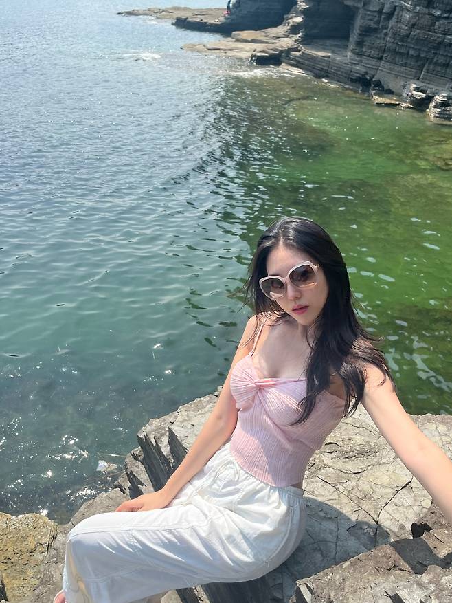 가디건+나시 세트를 입고 사진 찍을 때만 살짝 벗어 던지는걸 추천드려요!