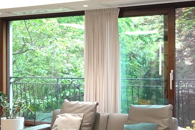한고은의 집 내부는 깔끔하게 정돈된 베이지 톤의 벽지와 가구 인테리어로 모던한 분위기를 연출했습니다. 특히 베란다에 펼쳐진 탁 트인 '감나무 뷰'가 장영란을 감탄케 했는데요~