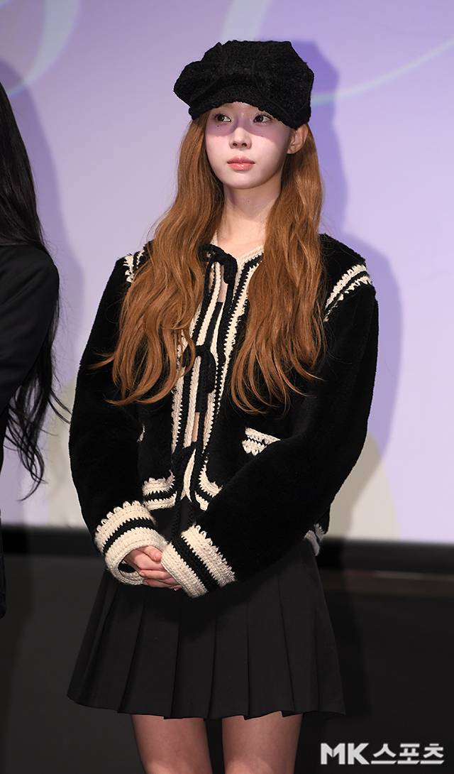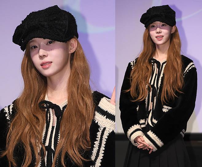 또, 윈터는 모자 앞쪽이 리본 모양으로 디자인된 검은색 플리스 헌팅캡을 착용해 시크하고 스타일리시한 매력을 자랑했습니다.