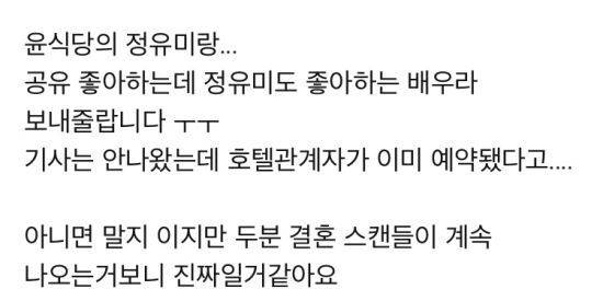 몇 차례 불거진 열애설을 모두 부인하고 그저 친한 오빠 동생 사이라고 해명했지만, 호텔 관계자라는 한 네티즌은 두 사람이 신라호텔 결혼식장을 예약했다는 루머를 퍼뜨렸습니다.
