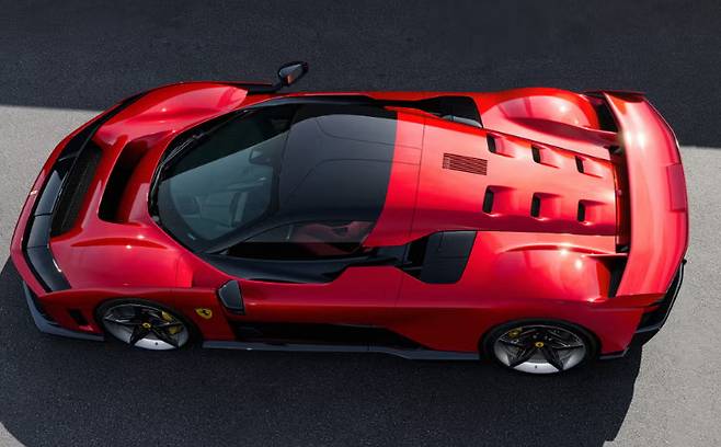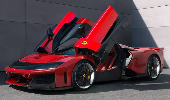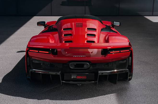 F80은 마세라티의 후속 격곤 고성능 하이퍼카로, 카본 모노코크 구조와 트랙 기반의 기술을 장착한 명실상부한 페라리의 고성능 전략차다. 900hp 출력의 3.0리터 V6 엔진(F163CF, 르망 우승 프로토타입 기반)에 300hp 전기모터를 더한 하이브리드 파워트레인은 총 1,183마력을 발휘하며, 250km/h에서 1,050kg 다운포스를 생성한다. 여기에 3D 프린팅된 서스펜션과 e-터보(MGU-H), e-4WD 시스템은 트랙에서 즉각적인 반응성과 성능을 보장한다. 생산은 799대로 한정되며, 2027년 페라리 창립 80주년 기념으로 완전히 소진될 예정이다.