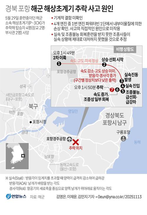 ![해군이 지난 29일 포항에서 비행훈련 중 추락한 해상초계기 P-3CK의 사고 당시 모습이 담긴 CCTV 영상을 공개했다. 사진은 해상초계기 사고 당시 모습. [해군 제공]](https://img2.daumcdn.net/thumb/R658x0.q70/?fname=https://t1.daumcdn.net/news/202511/13/mk/20251113164805452tbjp.jpg)