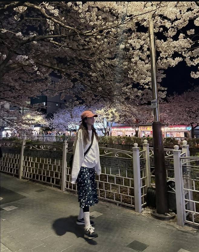 벚꽃보다 더 화사한 정려원의 야간 산책 스타일은 일상 속 힐링 패션으로 완벽하게 자리매김했습니다.