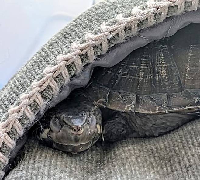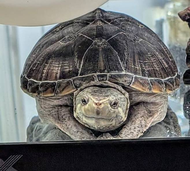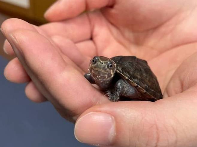 공개된 사진 속에는 한눈에 봐도 손바닥 안에 쏙 들어가서는 새초롬한 표정을 지어 보이고 있는 거북이 모습이 담겨 있었죠.